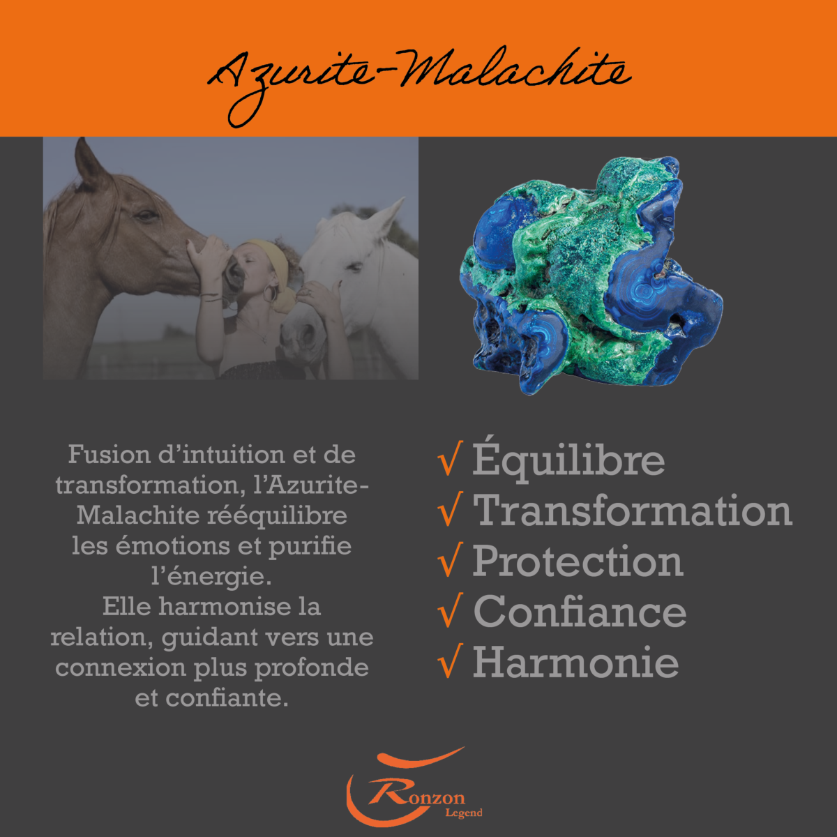 -Azurite-Malachite: Fusion d’intuition et de transformation, elle rééquilibre les émotions et purifie l’énergie.
