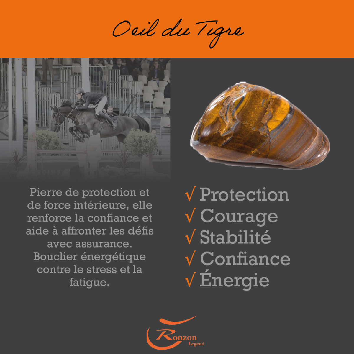 -Oeil du tigre: Pierre de protection et de force intérieure, elle renforce la confiance et aide à affronter les défis avec assurance. Bouclier énergétique contre le stress et la fatigue.