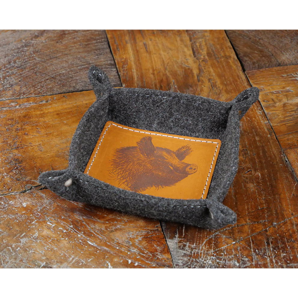 Petit Vide-Poche en Cuir gravé - Sanglier